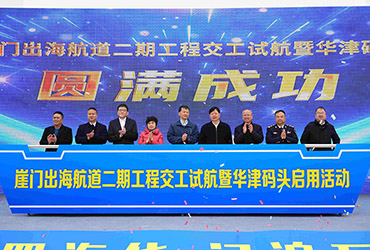 “江通四海貨?門泊萬噸船”崖門出海航道二期工程交工試航暨華津碼頭啟用